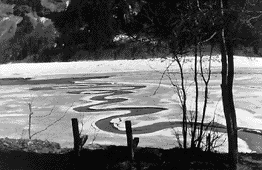 Am 10. Mai 1970 lagen noch ein paar Schneeresten auf der Autostrasse, die entlang dem Klöntalersee, vom Rhodannen zum Vorauen führt. Die auf dem Bergsee liegende Eisschicht war allerdings bereits dünn und im Begriff sich langsam aufzulösen. In unmittelbarer Nähe des sogenannten Hinteren Ruestelchopf zeichnete sich der reizvolle und kurvenreiche Verlauf des Baches auf der gefrorenen Seeoberfläche ab. Während der Mittagszeit konnte eine schwache Strömung festgestellt werden. Solange die Temperatur über Null lag, führte der Bach auch Schlemmsand und Steine mit sich. Entsprechend dem sinkenden Temperaturverlauf verlangsamte sich die Strömung, konnte bis gegen den späteren Nachmittag nur noch Sand und kleinere Steine mit sich führen. Was geschah mit den grösseren Steinen? Sie wurden beidseitig des bald wieder erstarrten Baches deponiert. Das Aussergewöhnliche war, dass diese abelagerten Steien wie von Menschenhand gesetzt und einer Perlenkette ähnlich auf einer grossen Distanz den Bach säumten.