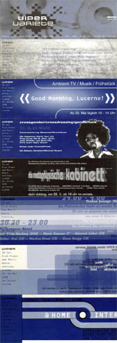 Varieté VIPER 98 in Zusammenarbeit mit Lilian Raeber, Max Frei, Mo Diener, Marcus Maeder, Siraj Izhar, Micz Flor, Dominik Süess, Andy Feyes, Nader Kuhenusi und @ HOME im Rahmen von VIPER 98, Casino Kursaal Luzern Jenseits der industriellen Produktion und Distribution von Zerstreuung und guten Gefühlen bleibt der Ausgangspunkt von Unterhaltung letztlich ein soziales Moment: Cross Culture: Die Begegnung mit einer anderen, "fremden" oder "exotischen" Kultur ist zugleich eines der traditionellsten wie auch zwiespältigsten Motive des westlichen Konzepts von Unterhaltung. Die realen Voraussetzungen von Migration und die Situation der verschiedenen Minderheiten stehen meistens im krassen Widerspruch zu den eurozentrischen Vorstellungen einer "multikulturellen" Gesellschaft. So wird gerade die erfolgreiche Entwicklung neuer Stile und Richtungen - etwa in der Musik - im Spannungsfeld unterschiedlicher kultureller Herkunft immer wieder als Vorzeigebeispiel missbraucht, um das letztlich wirtschaftlich motivierte Konzept der "Globalisierung" aufzuwerten. Performance: Im Zeichen des medialen Imperativs der grössten Wirkung, der besseren Performance und der realistischeren Effekte bilden die Auftritte der eingeladenen KünstlerInnen einen spannenden Kontrast mittels überraschend einfachen Aktionen und der etwas anderen Wirkung physischer Präsenz im Raum. Crossgender: Vor dem Hintergrund einer aggressiven und ständig wiederholten Festschreibung der eigenen Person auf bestimmte Rollen, etwa in der Werbung oder in der Unterhaltungsindustrie, ist es nicht ganz einfach, zu erkennen, dass das, was früher als Identität beschrieben wurde und worauf alle gesellschaftlichen Traditionen basieren, sich langsam transformiert und auflöst. Übrig bleiben eine Identität als Spiel, wechselnde Aspekte der eigenen Person, basierend auf einer berechtigten Abneigung gegen Zuschreibungen jeder Art und die damit verbundenen Diskriminierungen und Ausgrenzungen von "abweichenden Minderheiten". Experimental: Ein zentrales Motiv der künstlerischen Arbeit mit neuen Technologien ist das freie Spiel mit Codes, Images und Identität. Ihre Bedeutung liegt in der Unterwanderung der als ungebrochen fortschrittlich dargestellten Realität und im lustvollen Missverstehen der allzu totalitär und chauvinistisch verkündeten Techno- und Informationsphantasien eines besseren (zukünftigen) Menschen und einer perfekteren (vernetzten) Welt, wo uns die Arbeit wie Freizeit vorkommt und die gesteigerte Produktivität eine besonders raffinierte Form von Unterhaltung ist. Infotainment: Formale Momente, etwa die Art und Weise der Inszenierung oder der Grad an Dringlichkeit und Unmittelbarkeit verwandeln Informationen in News, Facts oder Infotainment. Um Formen der Unterhaltung dreht es sich in jedem Fall. Der Wegfall einer faktischen Objektivität ist denn auch Voraussetzung für den relaxteren, interessensfelder- und communitiy-bezogenen Umgang mit Informationen und Technologie, mit der Selbstlegitimation als ExpertIn im eigenen Fachgebiet und mit der Erfindung einer eigenen Öffentlichkeit für die eigenen Inhalte. at Home: Das Private als Opposition zum Gesellschaftlichen oder Öffentlichen hat endgültig ausgedient. Die Unterscheidung zwischen privater Zeit zuhause, öffentlicher Zeit bei der Arbeit und gesellschaftlicher Zeit bei der Unterhaltung oder im Ausgang, gelingt nicht mehr angesichts der massiven Konzentration aller möglichen Tätigkeiten, Arbeiten und Angebote auf die uns zur Verfügung stehende Lebenszeit. |