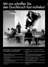 Das Business-Subjekt Materialien zur Subjekt-Konditionierung in der Wirtschaft Installation und Slideshow. Dauer der Show 15 min. Beginn jede halbe Stunde. Zonen der Ver-Störung, steirischer herbst 97 In Zusammenarbeit mit "Die aktuelle Wirtschaftswoche", Zürich 1997 Graz 1997 Auffällig häufig trifft man im Moment in Zeitschriften und Medien auf Themen rund um, sagen wir mal "Die neue Lust an der Leistung". Da wird über die Jugend berichtet, welche jetzt wieder leistungsbereit sei, es werden Führungskräfte porträtiert und ausführlich ihre Sorgen und Wünsche besprochen. In der Rubrik Tips und Ratschläge finden sich Artikel über neue Trainings- und Steuermethoden zur Steigerung der Effizienz und Erfolgsbereitschaft, über Coaching, Assessments und wie all die Techniken im Fachjargon heissen. Damit biedern sich jetzt die Tages-Medien bei einer kaufkräftigeren Zielgruppe genauso an, wie dies die simuliert luxuriösen Interieurs von Shopping-Malls, Business-Hotels und Dienstleistungszentren, oder das in Corporate Communication geschulte Personal frisch privatisierter Serviceunternehmen schon seit Längerem tut. Der neue Stil des verschlankten und kundenorientierten Wirtschaftens, welcher uns im Alltag mittlerweile fast an jeder Stelle in oft grotesken Formen entgegentritt, basiert im einzelnen und im Privaten auf brutaler Ausgrenzung und Konkurrenz. Eine grosse Zahl von Personen wird angesichts einer inszenierten Wirtschaftskrise gezwungen, sich mit der Frage ihrer eigenen Leistungsfähigkeit, ihres Ausbildungsstandes und damit, ob sie wohl zukünftigen wirtschaftlichen Anforderungen genügen würden, auseinanderzusetzen. Quer durch alle Bereiche hindurch werden bei dieser Gelegenheit längst überholt geglaubte Leistungs- und Rollenkonzepte wieder eingeführt. Der neue Leistungsauftrag richtet sich ans einzelne Subjekt. Im Zentrum der konditionierenden Botschaften stehen einmal mehr traditionell chauvinistische, patriarchale Werte, inklusive den besseren Chancen für weisse Männer. Über die strategische Verknüpfung von Fachkompetenz und Professionalität mit festgelegten und geregelten Formen der Repräsentation, der Sprache, des gesellschaftlichen "Behaviours" und des "Outfits" im Berufsleben und in der Freizeit werden klare Grenzen gezogen und Ausschlüsse legitimiert, - die totalitäre Ideologie des Spätkapitalismus im Look eines Corporate Design. |