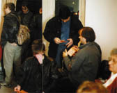 Bingo! Dont play the game Gameshow, Videos und Installation zusammen mit Marcus Maeder und Bernd Schurer Liget Galeria Budapest 1998 Der Raum ist mit bunten Girlanden geschmückt. An den Wänden hängen farbige Schriftbänder mit den wichtigsten Eigenschaften, welche zum zeitgemässen Erfolgs-Subjekt gehören: jung, smart, flexibel, innovativ, ausdauernd, überzeugend, Das Publikum ist eingeladen, an einem Bingospiel teilzunehmen. Mit einem eigens für diesen Anlass gemixten Soundtrack ist für kontinuierliche Unterhaltung gesorgt. Zwischen den einzelnen gezogenen Zahlenreihen werden kurze Videos zum Thema Erfolg und Karriere gezeigt. Die Show ist dann zu Ende, wenn eine Zuschauerin alle Zahlen auf ihrer Karte abgedeckt hat. Bingo! |