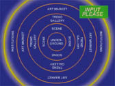 Art Games Videos, Sound Marcus Maeder Zürich 1998 Video-Clips von simulierten Computer-Games greifen ironisch und affirmativ direkt strukturelle und rituelle Motive des traditionellen Kunstkontext und der damit verbundenen Idee von Erfolg auf. In einem turbulenten "Institutional Rally" durch den hindernisreichen Karrieren-Tube flitzt man an allen wichtigen Institutionen des westlichen Kunstzirkus vorbei. An der Slotmaschine "The Curator‘s Choice" gewinnt man nur dann, wenn dreimal der Kopf des gleichen, international bekannten Star-Kurators auftaucht, und bei "Chart Dart" entscheidet sich schnell, auf was man mit der eigenen Arbeit eigentlich zielt. |