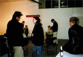 Thinkpad Installation und Vortrag als Beitrag zur Veranstaltungsreihe "Ephemeriden", in Zusammenarbeit mit Robert Salzmann (Isopublic, Gallup), Projektraum Hohlstrasse Zürich 1994 Ausganspunkt der Arbeit ist die in den Medien aufgetauchte Notiz, dass Gallup international sich zum Ziel setzt, im Jahre 2000 innerhalb von 24 Stunden die Hälfte der Weltbevölkerung nach ihrer Meinung befragen zu können. Thematische Motive der 24-stündigen Aktion sind demnach Statistik, Meinungsforschung, gesellschaftliche Feed-Back-Funktionen und die Entstehung von kollektiven Bildern. Über eine zentral im Raum installierte Laufschrift laufen aktuelle statistische Angaben aus Zeitungen und Medien zu verschiedensten Sachfragen: Daten über die Geburtsraten in China, Umsätze von Firmen, Angaben über die Anzahl der in Bosnien verschleppten Kinder etc.. Die Zahlen sind erstaunlich, erschreckend oder sie liegen im Bereich des Erwarteten, je nach Thema und je nach subjektiver Gewichtung. An der gegenüberliegenden Wand sind 41 Abbildungen aus einem Lehrbuch über psychologische Diagnostik in der Umfrageforschung ausgestellt. Besucher können an einem Wettbewerb teilnehmen, die Schätzfrage lautet: An wie vielen Tagen hat es zwischen dem 1. Mai 1993 und dem 30. April 1994 in Zürich geregnet oder geschneit? und zu gewinnen sind die drei über der Bar ausgestellten kleinen Arbeiten, in welchen ebenfalls statistische und demografische Motive auftauchen. Um 20.15 Uhr findet ein Vortrag mit einem Vertreter einer auf Meinungsumfragen spezialisierten Firma statt. Er berichtet über die im Zusammenhang mit repräsentativen Umfragen praktizierten Methoden, demonstriert aktuelle Beispiele und beantwortet anschliessend Fragen aus dem Publikum. Im Anschluss daran ist Barbetrieb und am Buffet wird ein Imbiss angeboten. Meine künstlerische Grundkonzeption basiert wesentlich auf der Idee, dass jede Form von Darstellung, Erscheinung und Ausdruck vorübergehend gültige, gesellschaftliche Konvention ist und als solche im Rahmen der kulturellen Evolution laufend neu definiert werden muss. Ein Blick auf die Entwicklung der Kunst zeigt, dass auch hier immer wieder Modelle der Wahrnehmung und der Sinnstiftung entwickelt wurden, welche sich kurze Zeit später als gültige und durchaus mehrheitsfähige Beschreibungen der individuellen und kollektiven Realität durchgesetzt haben. Kunst greift somit auf ihre Weise in den Prozess ein, in welchem die individuellen Bilder von subjektiver Welt über Rituale der Bedeutungsbildung synchronisiert werden und so die Vorstellung der sozialen, sozusagen gemeinsam benutzten Welt generiert wird. Klar, dass aus der Sicht einer Arbeit, welche sich bemüht, das Zustandekommen von kollektiven Bildern aufzuklären, der stetige Strom scheinbar objektiver Informationen über den Zustand der Welt, suspekt ist und dass daher immer wieder auf seine relative Gültigkeit hingewiesen wird. Gleichzeitig aber bleibt die riesige Diskrepanz zwischen individuellem Empfinden (auch Freiheit und Kreativität) und gesellschaftlichen Konventionen (etwa Moral und Ethik) als eine Art Grunddynamik kultureller Evolution unüberwindbar. |