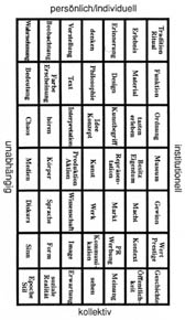 Begriffsfelder Zürich 1994 Begriffsfelder sind Denkbilder. Sie stellen eine Ebene zwischen Text und Bild dar. Jeder in die Liste eingebrachter Begriff zu einem bestimmten Thema steht, dank einfachen grafischen Ordnungsmuster, in Beziehung zu jedem anderen Begriff. Ausgehend von den unzähligen möglichen Kombinationen von Begriffen von Paaren, Oppositionen, Quadraten, Spalten, Zeilen, Diagonalen und gegenüberliegenden Ecken etc. können die BetrachterInnen eigene komplexe Sinn- und Bedeutungszusammenhänge bilden. |