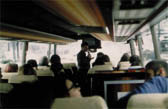 Fahrt ins Blaue Fahrt ins Blaue I, Emmental 1989 Fahrt ins Blaue II, Hannover - Harz BRD/DDR 1990 Fahrt ins Blaue III, Shedhalle Zürich 1990 Eine kleine Gruppe von Gästen wird auf eine Fahrt ins Blaue eingeladen. Die Reise führt von einem Ort ausgehend durch verschiedene Räume, Gegenden und je nach Thema Situationen. Die Reisegruppe macht unterwegs an vorher von mir ausgewählten Orten Halt. Es finden verschiedene Besichtigungen und Führungen statt. Möglicher Höhepunkt des Ausflugs bildet ein Essen in einem Gasthof. Auf dem Heimweg erhalten jeder Teilnehmer und jede Teilnehmerin ein Abschiedsgeschenk. Die Fahrt ins Blaue verstehe ich nicht als inszeniertes Spektakel, sondern als Reise durch reale Umfelder, vorgefundene Räume und soziale Situationen. Die feine Differenz zwischen dem, was ist und als solches zum Alltag gehört, und dem was aus der bequemen Situation des Reisenden heraus aufgehoben in der Gruppe der Besucher beobachtet wird, tritt im Laufe der Fahrt unweigerlich spektakulär in Erscheinung. Die Fahrt ins Blaue, je nach Standpunkt als Expanded Performance, Freizeitangebot oder soziales Ereignis beschreibbar, interessiert mich vorallem als ein Experiment im gesamtkulturellen Zusammenhang, nicht als Kunstform, ohne dabei zu ignorieren, dass sie auch aus der Perspektive des Kunstkontexts attraktiv ist. Es stellt sich heraus, dass die Fahrt ins Blaue eine Art Methode ist, um auf der Grenze von Alltag und Kultur Untersuchungen über Formen und Rituale der Rezeption anzustellen. Das Gefühl zu Reisen, die Überwindung des physischen und seelischen Stillstandes schaffen eine gelöste - von den Befindlichkkeiten alltäglicher Momente losgelöste - Atmosphäre. Die fehlende Definition des genauen Zwecks und der exakten Bedeutung der sonst gut bekannten Veranstaltungs-Gattung Fahrt ins Blaue entsprechen der offenen Situation. Weil in dieser offenen Disposition alle Beteiligten ihre eigenen Zuordnungen machen und diese auch häufig wieder in Frage stellen, sind die Erlebnisse kontrovers, die Haltungen - von Ablehnung und Zynismus über Belustigung bis zu engagiertem Interesse - verschieden. Die unterschiedlichen Standpunkte innerhalb der Reisegesellschaft generieren den beabsichtigten Diskurs. Situation und Umfeld, ein komplexes Gefüge von Zeichen und Abläufe und ein ganz bestimmter Stil der Kommunikation bestimmen die persönliche Wahrnehmung weitaus stärker als ein einzelnes optisches oder ästhetisches Signal. Diese Erkenntnis ist fundamental für die Entwicklung neuer Arbeitsformen und Haltungen, wie sie etwa in einem um soziale Dimensionen erweiterten Installationsbegriff, in der Kontext-Kunst und in den Social/Cultural Studies zum Ausdruck kommen. Beschreibung Fahrt ins Blaue 2 Die Reisegesellschaft bricht im Sommer 1990 mit einem Reisebus von Hannover aus zu einer Fahrt ins Harzgebirge auf. Der Tagesausflug führt über die alte Kaiserstadt Goslar und das Gebiet des West-Harz in der BRD zu einem Bergwerksmuseum. Ein kurzer Spaziergang auf den Gipfel des Sonnenbergs eröffnet einen Blick auf die weite Hügellandschaft des Harz, mit seinen typischen Tannenwäldern, welche durch den sauren Regen stark geschädigt sind. Vom Aussichtspunkt Brockenblick, an der deutsch-deutschen Grenze aus, kann durch installierte Fernrohre der sagenumwobene Brocken besichtigt werden. Er liegt bereits auf dem Gebiet der DDR in einer für die Öffentlichkeit nich zugänglichen, militärischen Sperrzone (Warschauer Pakt). Ihm gegenüber, auf dem Wurmberg (BRD) sind Spuren prähistorischer Kultanlagen erhalten geblieben und neben einer Luftseilbahn und einem Skilift für den Tourismus hat auch hier das Militär (Nato) einen Horchposten installiert. Die Reise führt dann über einen der neuen, provisorisch eingerichteten Grenzübergänge in die DDR, wo in einem abgelegenen Berggasthof, welcher bis vor kurzem als Erholungsheim für Parteifunktionäre diente, ein gemeinsames Nachtessen stattfindet. Als Unterhaltungseinlage tritt ein dreiköpfiges Team von Fahnenschwingern aus der Schweiz auf. Dann führt die Reise wieder zurück nach Hannover. Thematisches Umfeld dieser Reise bildet die Politik, welche an dieser Stelle (Harz) und zu diesem Zeitpunkt (1990) auf brisante Weise mit einer Exkursion durch die Landschaft erlebbar gemacht werden kann. Das Spektrum reicht von der Mythologie (prähistorische Kultstätte, später entstandene Sagen von Heiden und Hexen) über die Geschichte (Kaiserpfalz Goslar, Macht durch eigenes Silber), die frühe Industrialisierung und die späten Folgen (Blei- und Silberbergwerke seit dem frühen Mittelalter, Bergbau im 19., Waldsterben im 20. Jahrhundert), die neuere Geschichte (Kalter Krieg, Grenze, Wiedervereinigungsdiskussion, wiedererstarkender Nationalismus) bis zur Landschaft als Konsum- und Erholungsraum (Tourismus, Alpenersatz). Beschreibung Fahrt ins Blaue 3 Ausgangspunkt der halbtägigen Rundfahrt ist Zürich. Ein Reisebus führt die Gäste zuerst zum Verwaltungssitz einer grossen Schweizer Bank, zu einer Besichtigung ins 4. und 5. Untergeschoss, wo in einer speziellen Sicherheitsabteilung Gold gelagert wird. Zürich ist weltweit der grösste Handelsplatz für Gold (in physischer Form), während in London Gold vorallem auf Papier gehandelt wird. Auf der Weiterreise werden im Bus Tom and Jerry Cartoons gezeigt. Die Fahrt führt zum Management-Ausbildungszentrum der Bank, welches in einem alten Schloss an schöner Lage über dem Bodensee eingerichtet wurde. In einer kommentierten Führung wird die Philosophie der klosterähnlich funktionierenden aber mit modernster High Tech ausgerüsteten Bildungsstätte erläutert. Im Vortragssaal findet ein Referat über Persönlichkeitsbildung im Rahmen der jährlich wiederkehrenden Management-Fortbildungskurse statt. Das gemeinsame Nachtessen in einem traditionellen Gasthof im naheliegenden Dorf wird durch Darbietungen eines Zauberkünstlers aufgelockert, welcher den anwesenden Vertretern der Bank Geldbeutel, Uhr, Kravatt