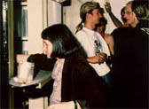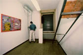 The Pointer Verschiedene Aktionen und Ausstellungen, u.a. Dissimulation in Zusammenarbeit mit Hans Wermelinger, Konradstrasse 77 Zürich 1989 In einer zur Galerie umfunktionierten Wohnung werden nach Angaben von Künstlerkollegen und Kolleginnen simulierte Kunstwerke ausgestellt. Die kleine Installation mit einer Bar in der Küche und roten Sitzkissen auf den Stufen des Treppenhauses wird zur Erlebnislandschaft und The Pointer für einen Abend zum ultimativen Szenenereignis von Zürich. Vorgängig finden verschiedene Einzelausstellungen in der zur Wohnung gehörenden Besenkammer statt. Unter dem Titel Dissimulation führe ich einen Abend lang, beleuchtet durch eine auf mich gerichtete Endlosfilmprojektion, auf welcher ich den Gästen entgegenrenne, eine Bar. |