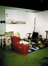 Pro Arte Ausstellungsbeitrag zur Kunstszene Zürich Zürich 1989 In einer Koje der Messehalle werden von verschiedenen Künstlern überflüssige Gegenstände aus Keller, Atelier und Lager zusammengetragen und zu einer Art Flohmarkt zusammengestellt. Die Besucher der Ausstellung werden aufgefordert sich zu bedienen, wenn sie etwas Brauchbares finden. Die doppeldeutige Überschrift, mit grossen Lettern auf die Wand geschrieben, lautet Künstler und Künstlerinnen geben ihr Letztes und bezieht sich sowohl auf die materielle Situation vieler im Kulturbereich engagierter, welche trotz grossen Anstrengungen kaum überleben können, als auch auf die unausgesprochene Erwartung und die damit verbundene, weitverbreitete Meinung, dass Künstler in ihrer Arbeit ihr Innerstes und Intimstes offenbaren sollen. |