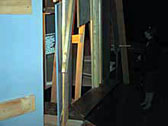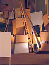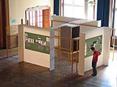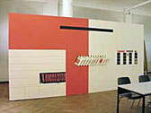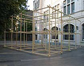 Insert 1 - 4 Simone Hain, Christiane Post, Karin Rebbert, Katja Reichard, Marion von Osten, Peter Spillmann, Axel John Wieder Installation im Rahmen der 6. Werkleitz Biennale, Halle (Saale) 1. - 5. September 2004 Insert 1 Insert 2 Insert 3 Insert 4 Insert 1 nach Alexander Rodtschenko, Entwurf für das Interieur eines Arbeiterklubs (1925) Im Erdgeschoss des Volksparks wird Alexander Rodtschenkos Inneneinrichtung eines Arbeiterklubs zitathaft rekonstruiert, die 1925 anlässlich der Exposition Internationale des Arts Décoratifs et Industriels Modernes in Paris präsentiert wurde. Das standardisiert zu produzierende Mobiliar des Arbeiterklubs sollte einfach, zweckmäßig und multifunktional benutzbar sein und entsprach damit den Kriterien konstruktivistischer Produktionskunst. Die Einrichtung bestand aus einem Lesesaal mit Tischen und Stühlen, verschiedenen Displays zur Präsentation (etwa von Zeitungen, Zeitschriften, Büchern, Plakaten, Karten, Zeichnungen, Fotos, Dias, Filmen und einer Wandzeitung) sowie einem multifunktionalen Komplexmöbel, das eine Rednertribüne, eine ausziehbare Plattform und eine Projektions- und Präsentationsfläche umfasste. Zur 6. Werkleitz Biennale wird unter Bezug auf Rodtschenkos Arbeiterklubinterieur ein Raum eingerichtet, in dem die Gruppen der Halle School of Common Property ihre Praxis und die Ergebnisse der dem Festival vorausgegangenenWorkshops vermitteln. In diesem Insert wird auch die Geschichte des Volksparks erzählt, die sich als Geschichte diverser Auseinandersetzungen um die Aneignung bzw. Überschreibung von Eigentum, Wissen und Geschichte beschreiben lässt. Interessant erscheint zudem die Beobachtung, dass die Architektur des Gebäudes, die nach bürgerlichem Vorbild entstand, von Bühnen- und Aufführungsräumen dominiert ist, die eine klare Trennung zwischen Agierenden und Publikum vorsahen. Auch in der Nutzung des Gebäudes als Polit- und Kulturarena scheint diese Trennung über die Jahrzehnte und unterschiedlichen Eigentumsverhältnisse hinweg zu weiten Teilen affirmiert und fortgeschrieben worden zu sein. Andererseits gibt der Ort des Volkshauses auch Anlaß, dieWiederaufnahme konstruktivistischer medialer Gestaltungsmittel in der lokalen hallensischen Kunstproduktion der Zwischenkriegszeit bis hin zum Alltag der DDR-Gesellschaft zu befragen. Das Material der Recherche in den Archiven der Stadt Halle und Berlin ist vor Ort einsehbar. Insert 2 nach Lazlo Moholy-Nagy, Raum der Gegenwart (1930) Im großen Saal des Volksparks werden zwei weitere historische Entwürfe, Wladimir Tatlins Bühnenbild Sangesi und Laszlo Moholy-Nagys Raum der Gegenwart, als Ausstellungssysteme gebaut und interpretiert. Der von Moholy-Nagy konzipierte Raum der Gegenwart (um 1930) kann als Prototyp moderner Ausstellungs- und Präsentationsdisplays gelten. Er sollte gemeinsam mit El Lissitzkys Raum der Abstrakten den vorläufigen Abschluss der Neugestaltung des Provinzialmuseums Hannover durch deren Direktor Alexander Dorner bilden. Der Raum der Gegenwart kam nie zur Ausführung. Der Entwurf basierte auf einem von Moholy-Nagy gestalteten Raum (salle 2) für die Werkbund-Sektion der Exposition de la Societé des Artistes Décorateurs in Paris 1930. In dem aus Glas und Stahl konzipierten Raum der Gegenwart sollten keine Originale, sondern reproduzierbare Bilder und Objekte ausgestellt werden. Es wurden verschiedene Displaysysteme projektiert, die man mit Medien wie Fotografie, Film- und Diaprojektionen bespielen wollte. Präsentiert werden sollten Beispiele aus Architektur, Theater, Film und Fotografie sowie Transportmittel, Sport, technische Bauten, Möbel, Plakat- und Stoffgestaltungen. In der Mitte des Raums sollte Moholy-Nagys lichtkinetische Plastik Licht-Raum-Modulator stehen, die vom Betrachter interaktiv in Bewegung zu setzen ist. Das zweite Insert stellt die mit spezifischen konstruktiven und medialen Bauund Ausstellungstechniken einhergehenden Bildungsdiskurse zur Diskussion. Die seit dem beginnenden 20. Jahrhundert sichtbaren Bemühungen um eine Aufwertung des Betrachterstatus durch partizipative Ausstellungsgestaltungen lässt sich auch als ein Ansatz zur Optimierung von Wissensvermittlung lesen. In solchen, vor allem in Architekturausstellungen entwickelten Modellen versuchte die Moderne, nicht nur Gebäude, sondern auch ein intellektuelles Programm zu vermitteln. Auf den Außenwänden des Inserts wird dieser Strang beispielhaft in drei Erzählungen weitergeführt: der Besetzung der Mailänder Architekturtriennale 1968 durch Studierende, den Entwürfen des US-Amerikaners Ken Isaacs zu multimedialem Wissensdesign sowie der Stadt im Raster Halle-Neustadt. Insert 3 nach Wladimir Tatlin, Bühne zur Inszenierung von Welimir Chlebnikows Stück Sangesi (1923) Neue Formen der theatralen Sprache erprobte die Inszenierung des Stücks Sangesi nach dem gleichnamigen Metapoem vonWelimir Chlebnikow, bei der Tatlin gleichzeitig Regie führte, die Hauptrolle spielte und das experimentelle Bühnenbild entwarf. Ort der dreimaligen Aufführung im Mai 1923 war kein Theaterraum, sondern der große Saal des Museums für Künstlerische Kultur in Petrograd. Tatlin entwickelte eine vertikale Konstruktion, die die vorhandene Bühne konterkarierte und den Zuschauerraum unter Verzicht auf Vorhang und Kulissen an das Geschehen anband. Die Inszenierung setzte verschiedenste Fragmente, Tafeln, Farbschemata und Schriftbilder, mathemati - sche Formeln und Gedichte ein und beinhaltete eine Ausstellung von Materialkonstruktionen. Angestrebt war eine Formgebung, die sich parallel zum Text bewegen sollte. Der Einsiedler, Dichter und Prophet Sangesi (Tatlin), der in der Inszenierung die Idee einer universellen Menschheitssprache verkörpert und seinen Zuhörern und Schüler/innen unverständlich bleibt, sprach von Scheinwerferlicht angeleuchtet vom höchsten Punkt aus. Etwas tiefer positioniert waren seine Schüler, dargestellt von Studierenden verschiedener Lehranstalten. Auf der untersten S