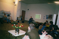 Viele der aufgeworfenen Fragen bezogen sich schliesslich auf eigene Lebensentwürfe und darauf wie denn überhaupt kulturelle Praxis mit politischem Bewusstsein aussehen könnte. In den Diskussionen gab es denn auch nicht viele Momente, wo über diese wesentlichen Dinge offen gesprochen wurde, weil sich die Teilnehmenden zum Teil nicht kannten und man sich ein Stück weit mit der eigenen Postition (in ihrer Relativität) nicht unbedingt outen wollte. Zudem existieren auch grundlegende Unterschiede in den Umfeldern (Land, Städte, politische Lage) der vorgestellten Projekte, wie vor allem Anwesende aus Ungarn oder Frankreich klarstellten.